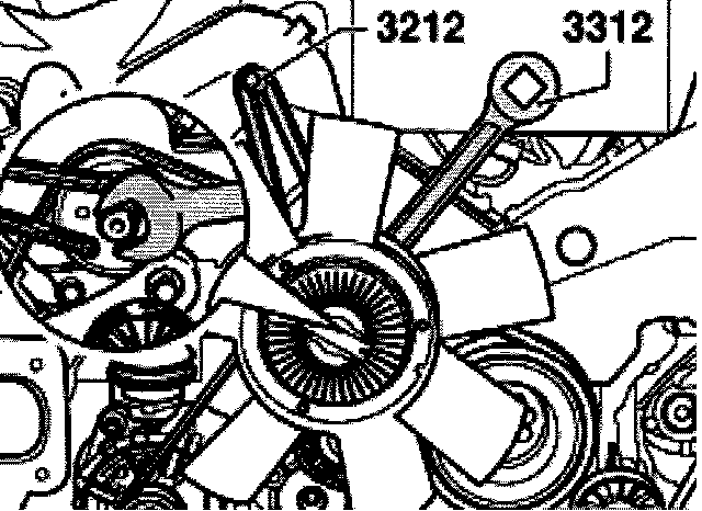 - Counter-hold pulley for viscous fan with pin wrench 3212 and remove fan with wrench 331 (left hand thread).