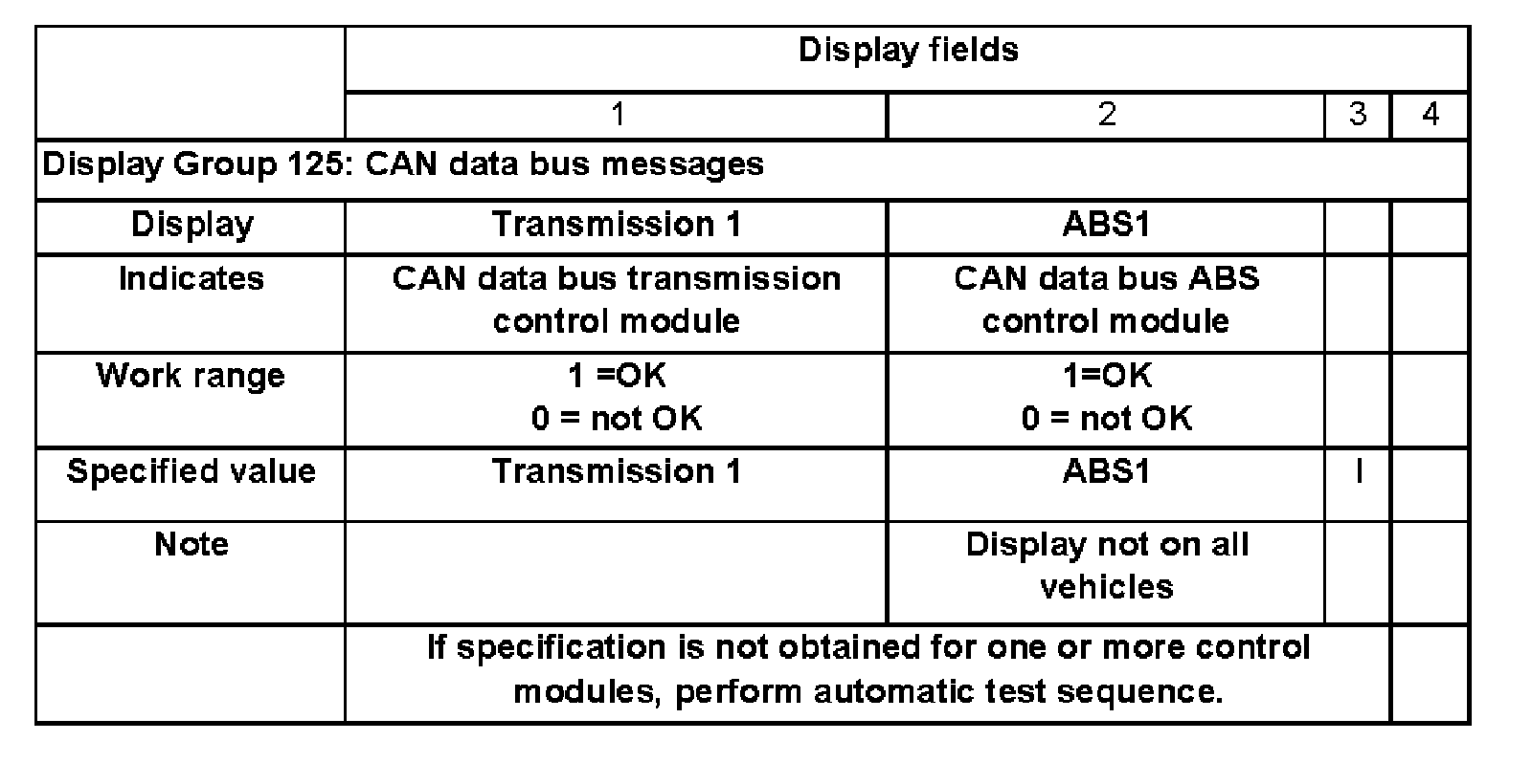 Data exchange between Engine Control Module (ECM), ABS/EDL Control Module, Transmission Control Module (TCM), checking