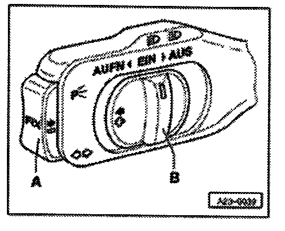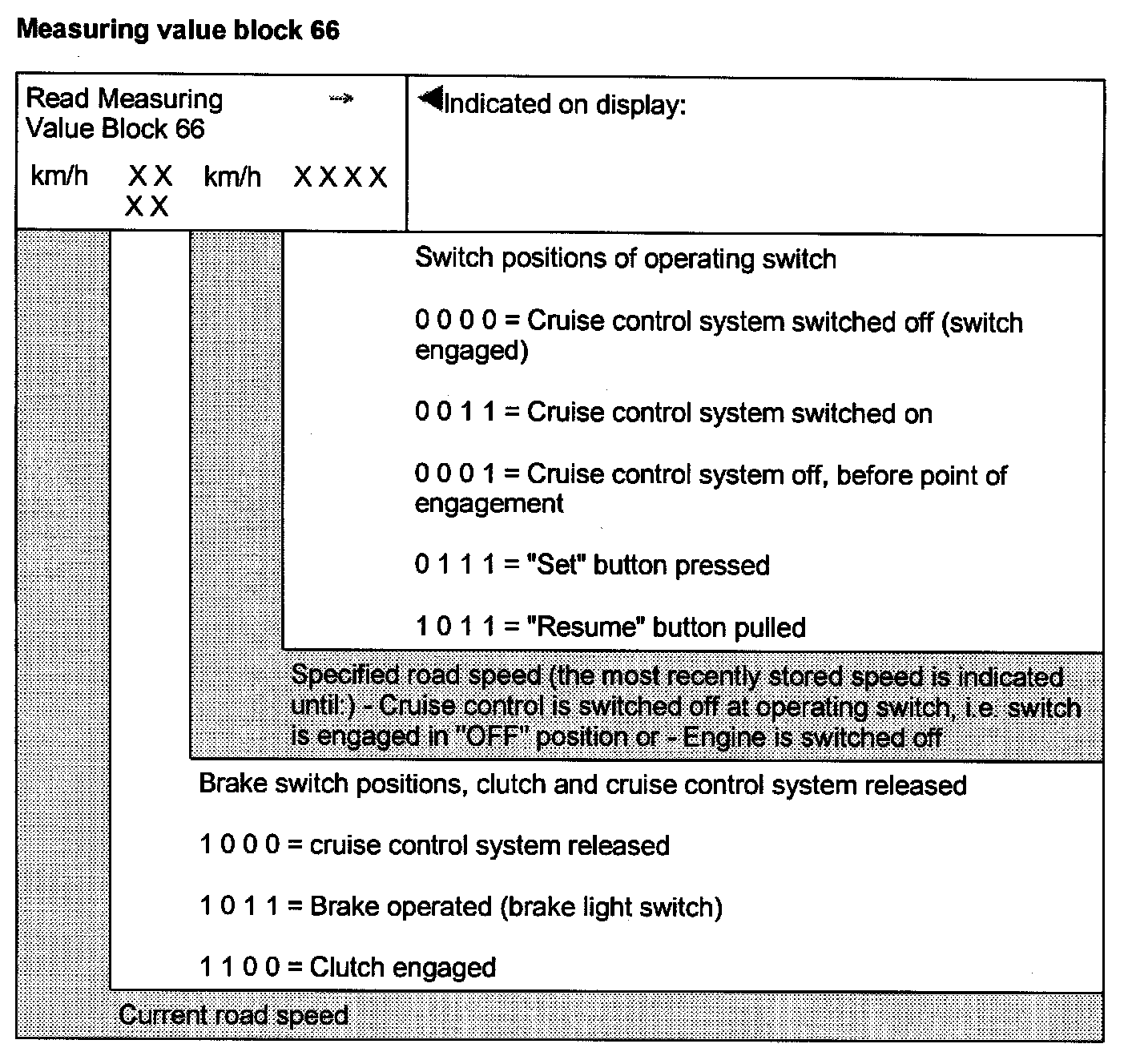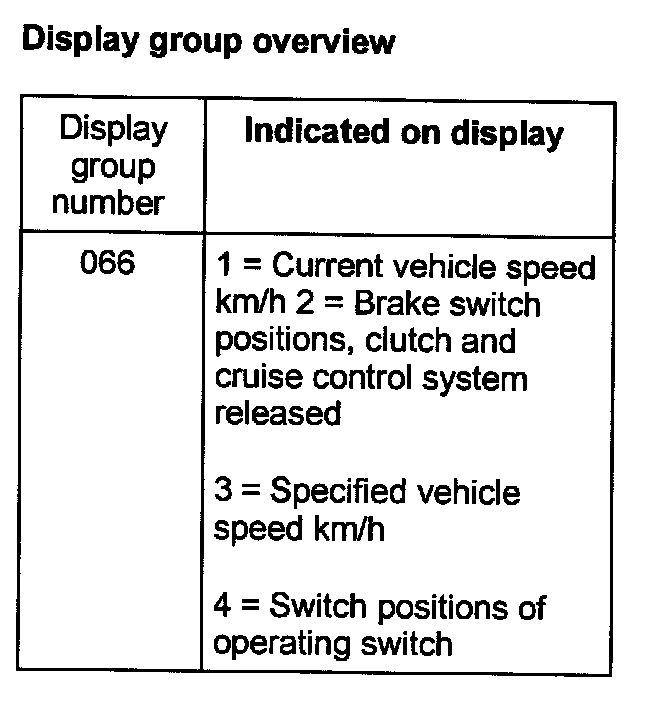 Note: For vehicles with automatic transmission, the voltage supply for the cruise control switch is not switched on until a speed of above 30 km/h is reached with selector lever in position -2-, -3- or - D-. The voltage supply will then be maintained at ideal, as long as a driving mode (aside from -1- or -R-) is selected.