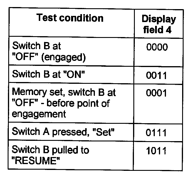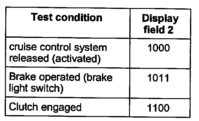 If the specified value in display field 2 for "cruise control system release" (1000) is not obtained: