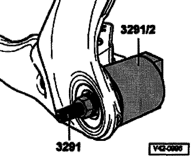 - Assemble 3291/1 thrust piece to bonded rubber bushing and insert at right angle into hole in subframe using 3291/5 tubular section (pay attention to recesses) and 3291 assembly device.