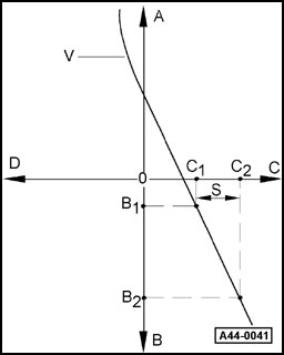 ^ The shape of this curve is determined by toe value C1 (measured with the wheel in a defined starting position B1) and by toe value C2 measured at a rebound, or extension, of 40 mm or 1.57 in. (for heavy duty suspension 1BB) or of 60 mm or 2.36 in. (for all other suspensions) relative to starting position B1)