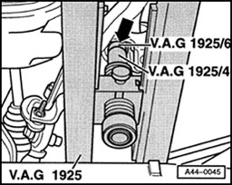 - Insert VAG1925 spacer together with VAG 1925/4 adapters and screw both threaded spindles out...