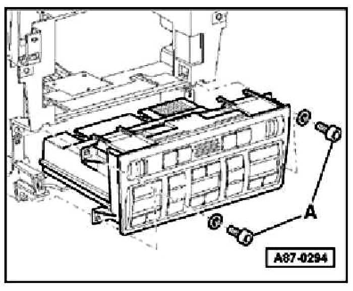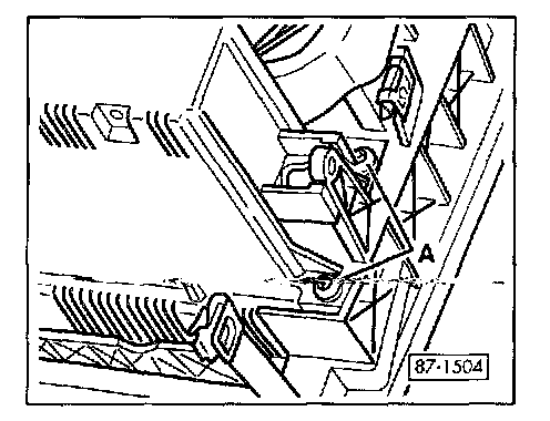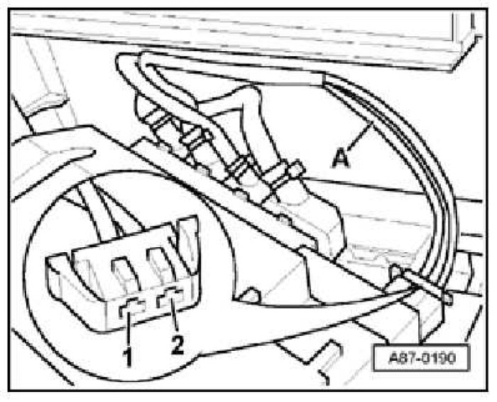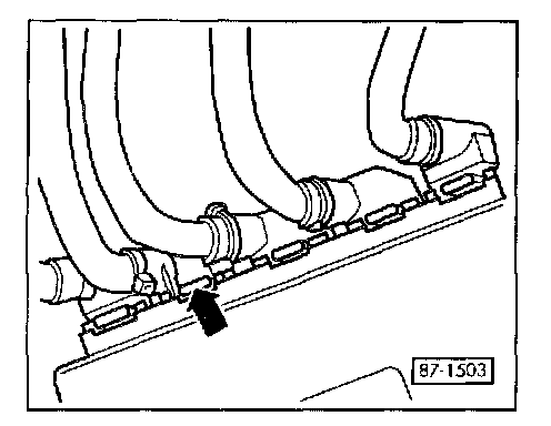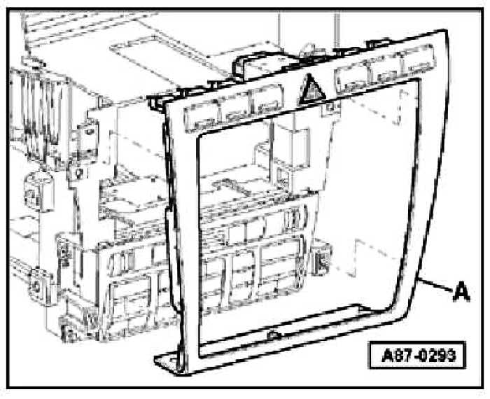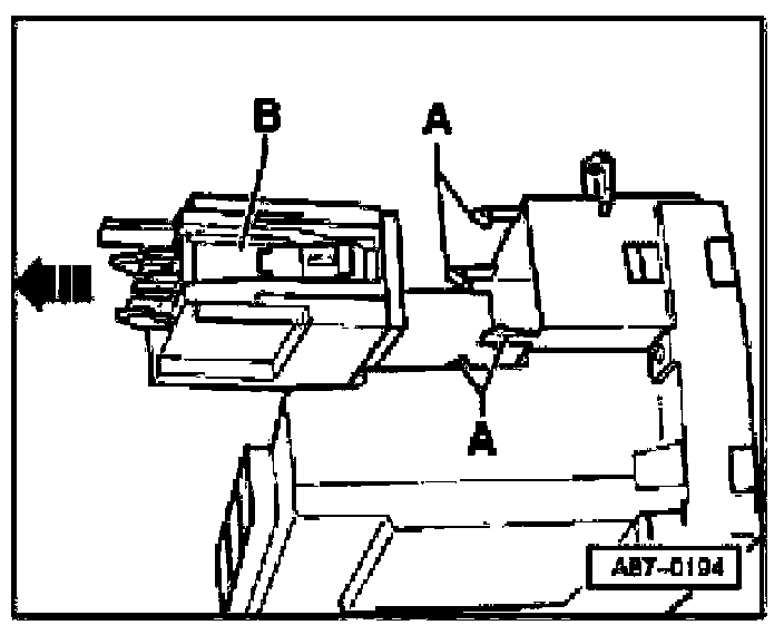 - Remove switch for heated seat, press tabs -A- back and remove switch -B- to the back out of A/C control head -E87-.