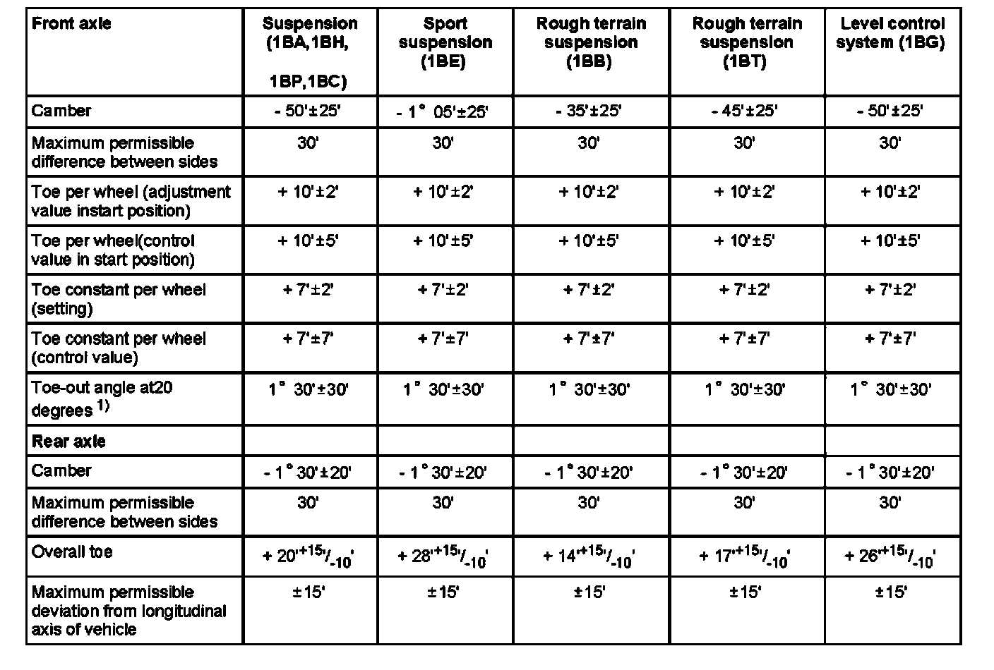 Wheel Alignment, Expected Values For Front Wheel Drive Vehicles