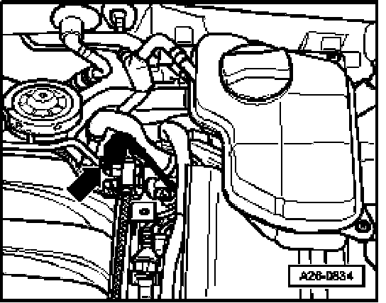 - At front right in engine compartment below the longmember (arrow)