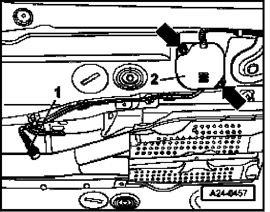 - Disconnect 4-pin connector -2- (brown) to Oxygen Sensor (O2S) before Three Way Catalytic Converter (TWC) -G130-.