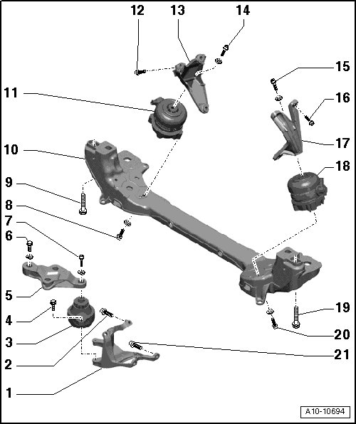 • Removing and installing, refer to => [ Torque Support Bracket ] Service and Repair