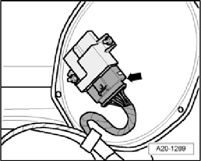 - Disconnect electrical harness connector - arrow - on Fuel Pump (FP) Control Module J538.