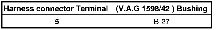 - Connect Test Box (V.A.G 1598/42) to wiring harness with Adapter Cable (V.A.G 1598/39-1) or Adapter Cable (V.A.G 1598/39-2); engine control module (ECM) remains connected. Clamp test box Ground (GND) clip to battery negative terminal.