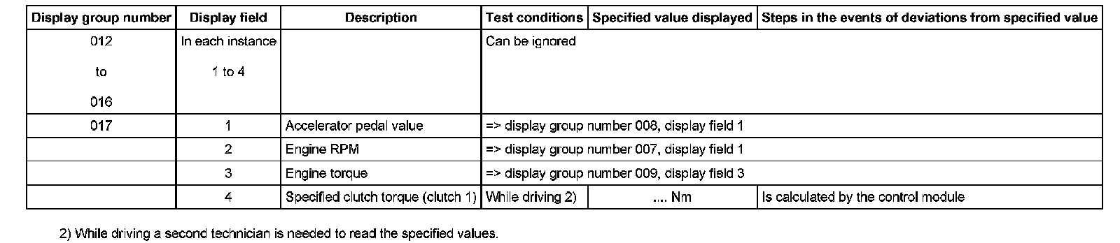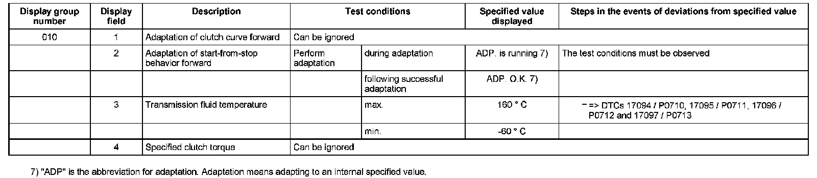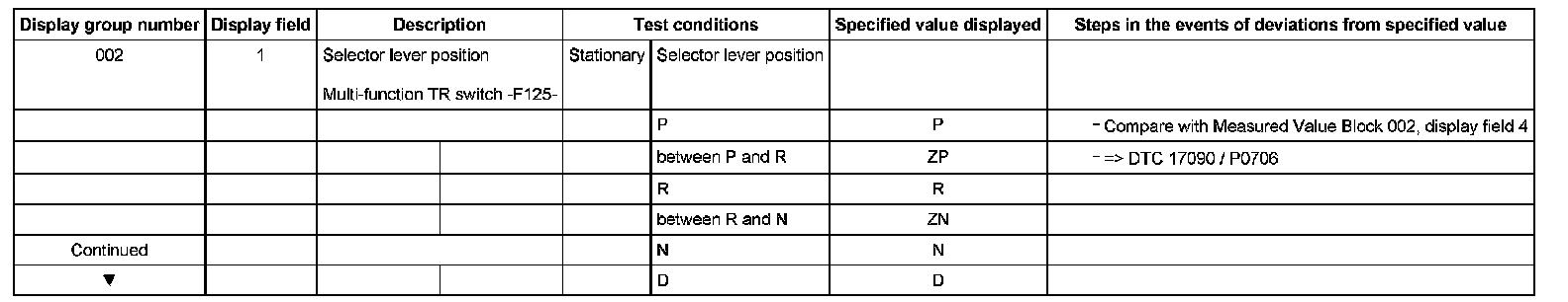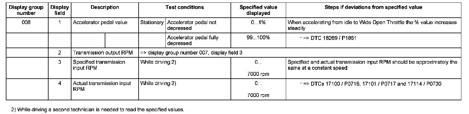 Measured Value Block table - 01J, Continuously Variable Transmission (CVT)