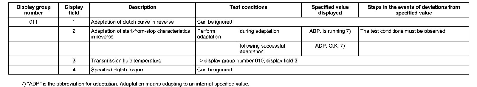 ^ If "0 RPM" is shown in display field 3 and 4, there is a mechanical defect in the transmission, and the transmission must be replaced.