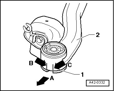 - Completely coat hydraulic mounting with installation lubricant G 294 421 A1 thin with water at a ratio of 1:100.