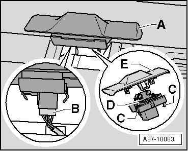 • Cover with Sunlight Photo Sensor (G107) - A - is held in the instrument panel by clips - C -.