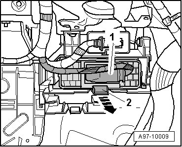 - Press clip - 2 - aside - arrow - and pull Vehicle Electrical System Control Module 2 (J520) out of retaining frame.