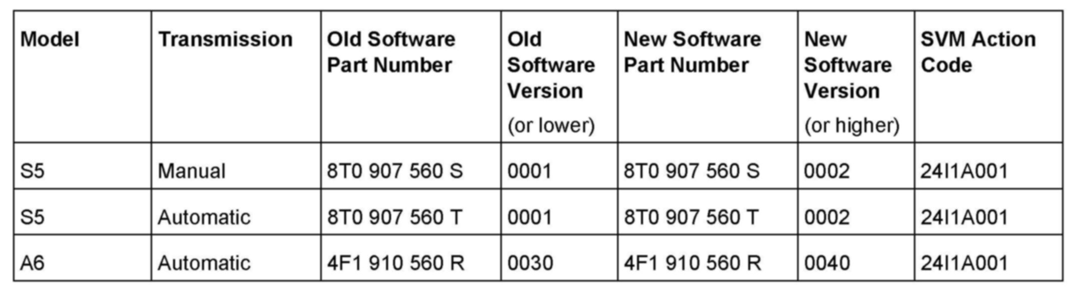 2. Update the ECM (J623) using the SVM action code as listed in the table above if necessary.