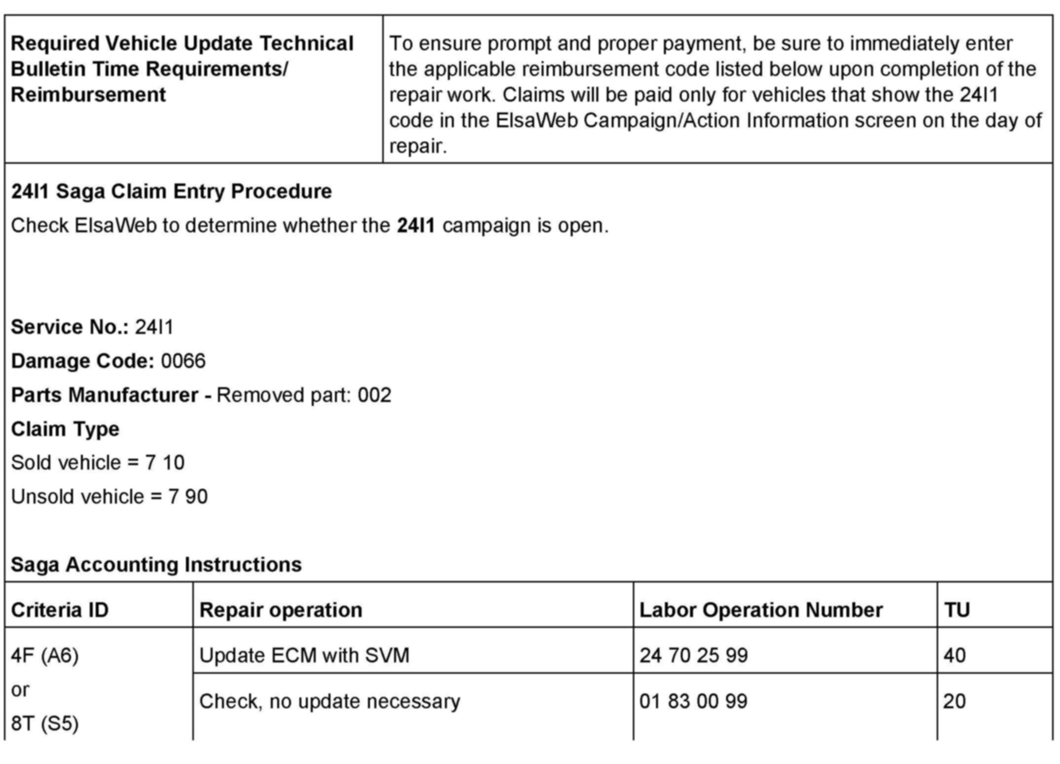 ^ Procedure is valid only for vehicles that show the 24I1 code in the ElsaWeb Campaign/Action Information screen on the day of repair.
