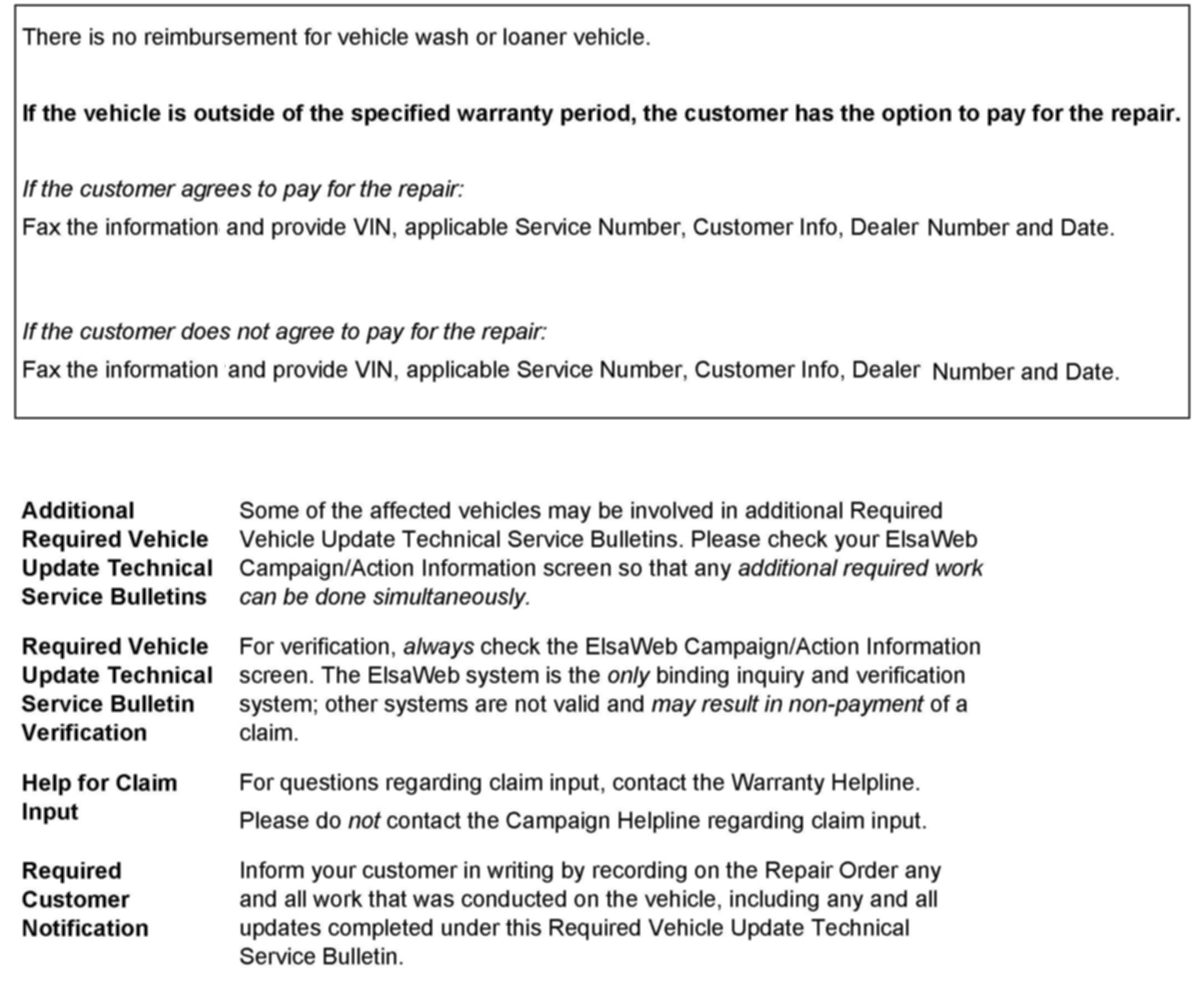 ^ Procedure must be performed within the allotted time frame stated in this Technical Service Bulletin.