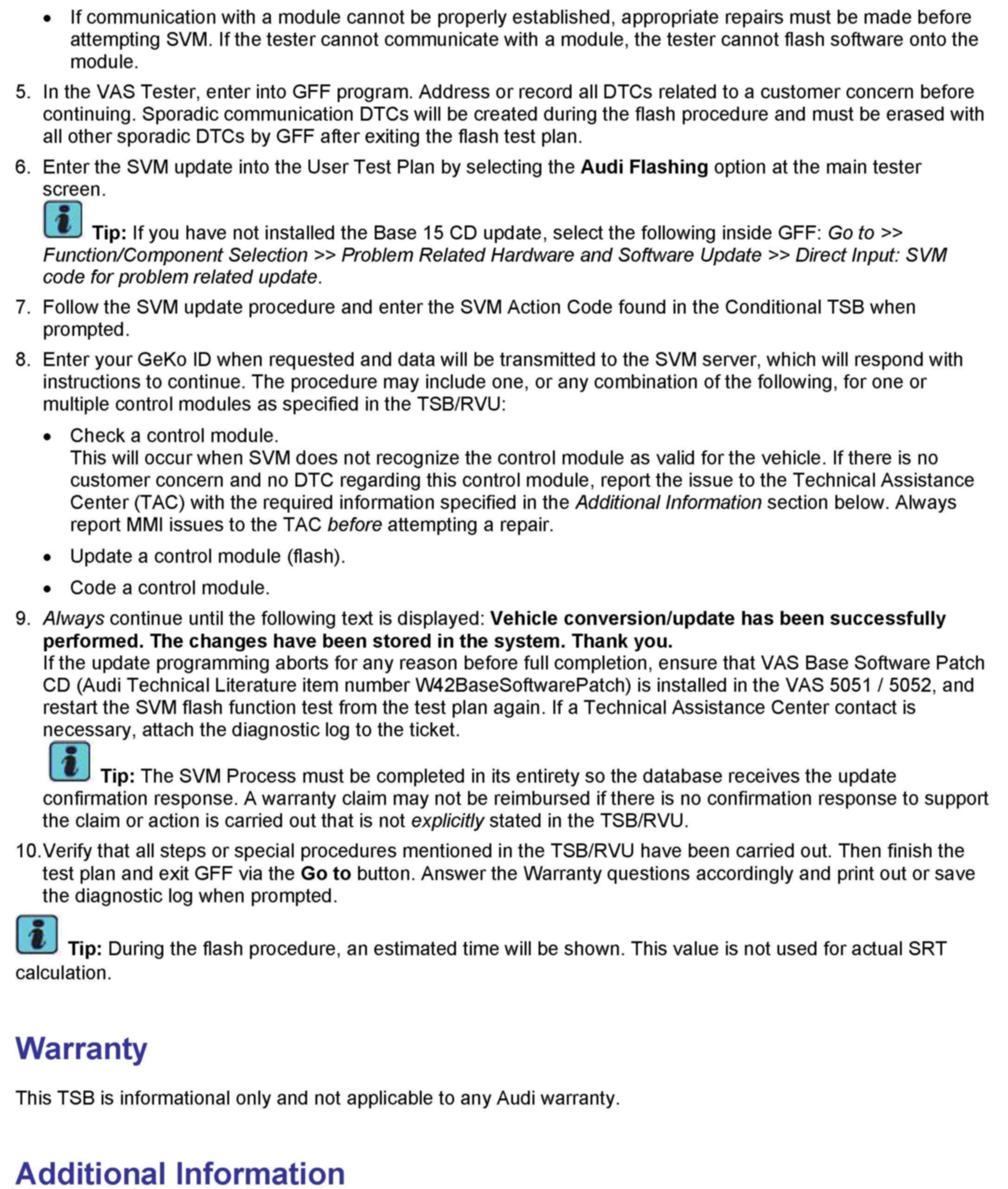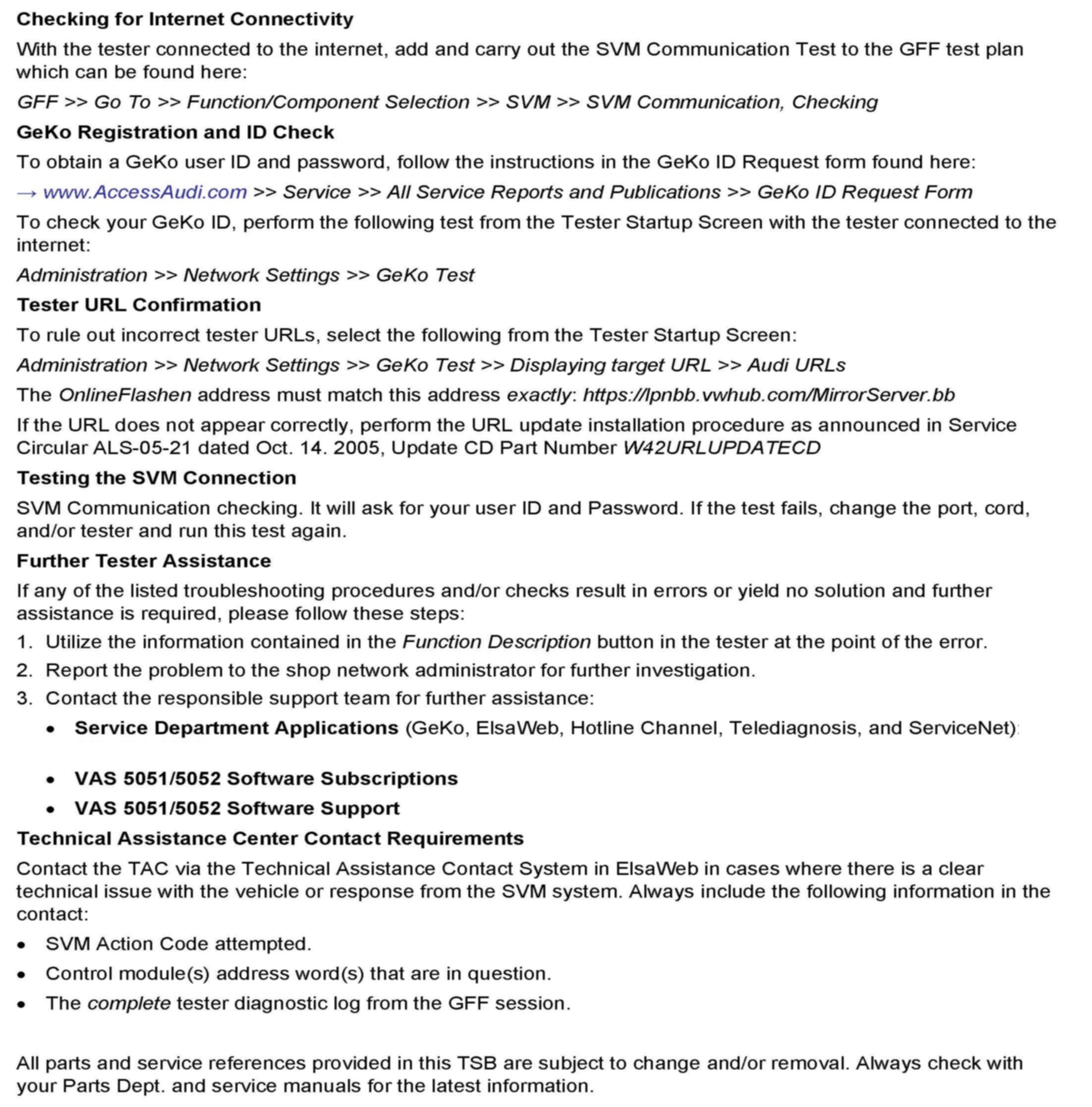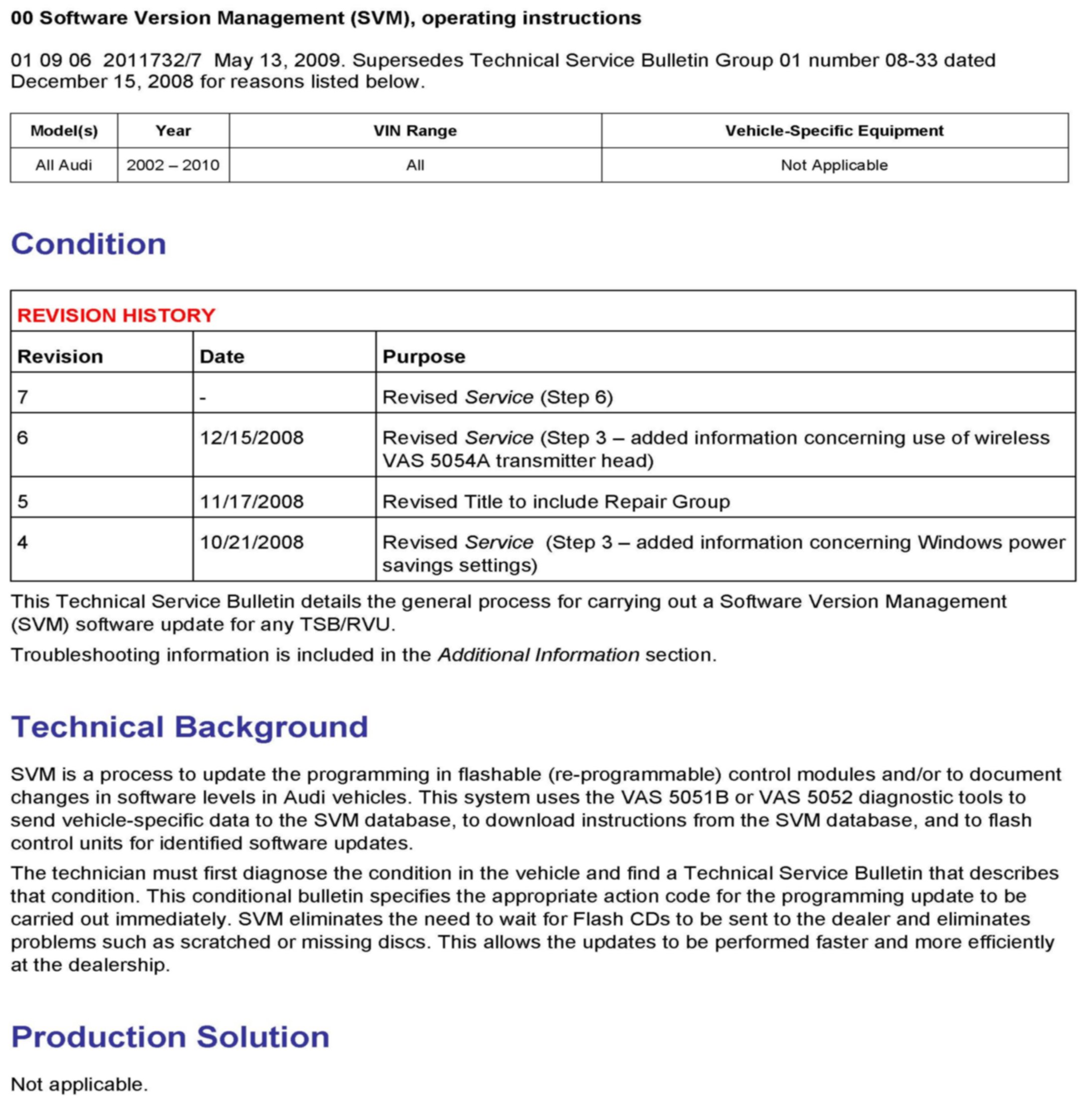 1. Follow all instructions in the attached TSB 2011732 00 Software Version Management (SVM), operating instructions.