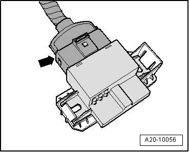 - Disconnect electrical harness connector - arrow - on fuel pump (FP) control module.