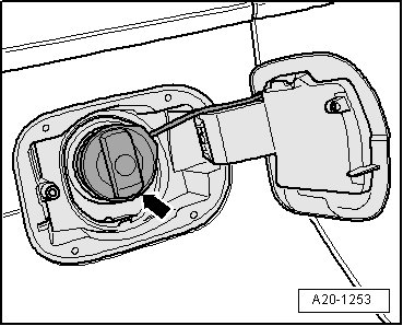 - Remove fuel filler cap - arrow - from fuel filler tube.