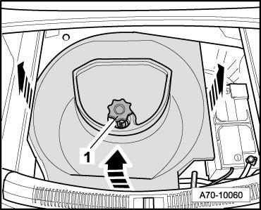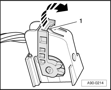 - Press catch - 1 - and rotate retaining bracket in direction of - arrow -.