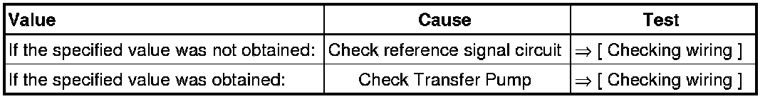 - Specified value: Listen for the transfer fuel pump noise, pump should be running.