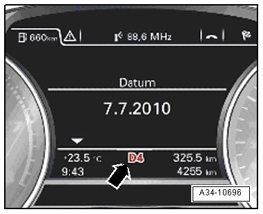 • Installed location: The transmission range display - arrow - is integrated inside the instrument cluster.