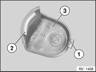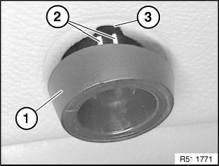 Insert rosette (1) with turning lock (2) in opening (3) of door trim panel.
