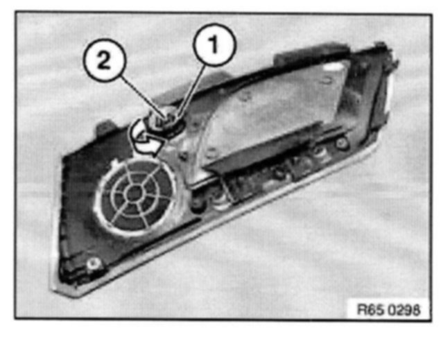 Unscrew ring nut (1) in direction of arrow and remove treble speaker (2) towards bottom.