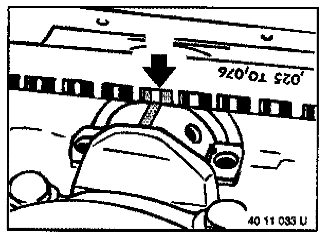 Remove bearing cover and read off bearing clearance across width of pinched plastic thread with the help of the measuring scale.