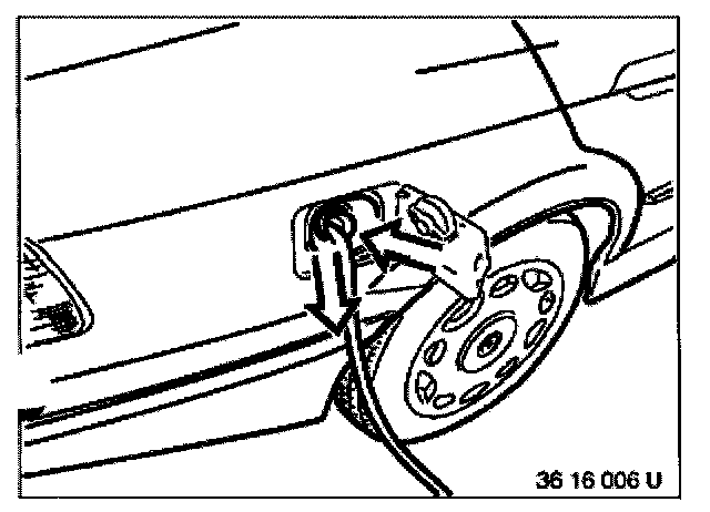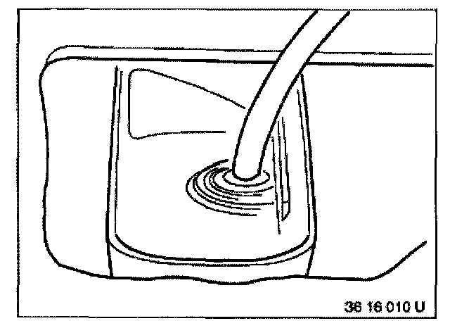 NOTE: Fuel can be drawn oft from the left and right tank halves through the fuel filler pipe down to a small residual amount. This residual amount is drawn oft after removal of the sensors for the fuel gauge (right/left).