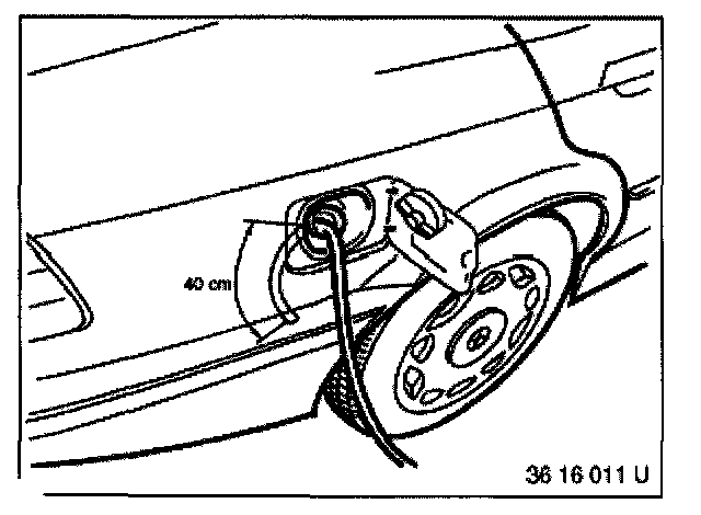 refer to BMW Service Workshop Equipment & Planning documentation, approx. 40 cm into filler pipe.