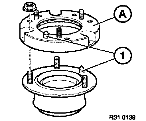 Centering pin (1) of thrust bearing must rest in bore of adapter (A).