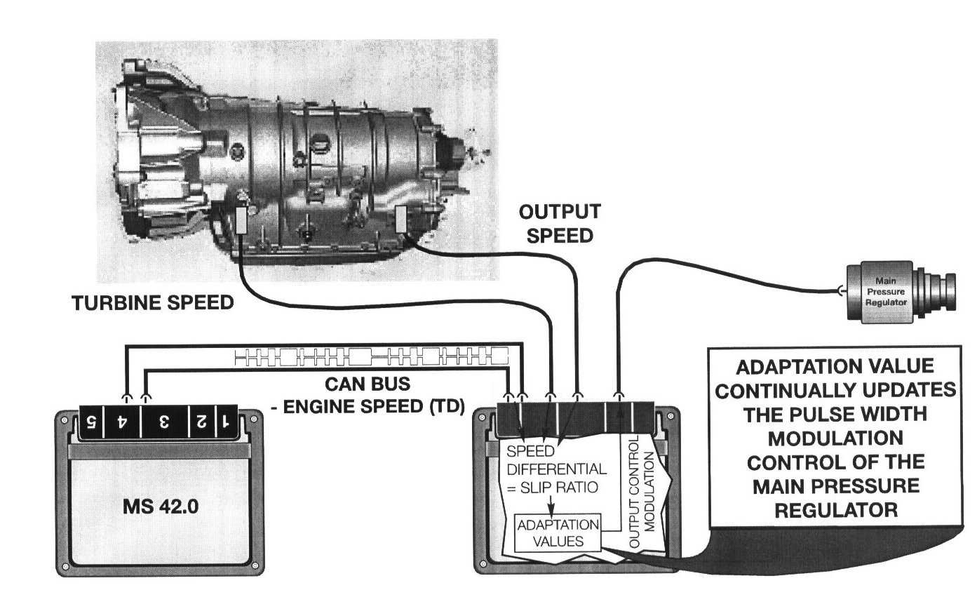 The comparison of target & real slip allow the GS 20 to perform the adaptive pressure control function by modifying the PWM control of the main pressure regulator solenoid increasing the clutch apply pressures to compensate for internal slip. The adaptive pressure control function optimizes the shift quality and increases the life span of the clutch plates.