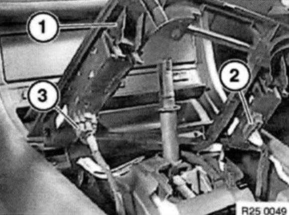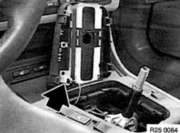 Lever trim (1) out of center console, disconnect cable plugs (2 ... 3) and remove trim (1).