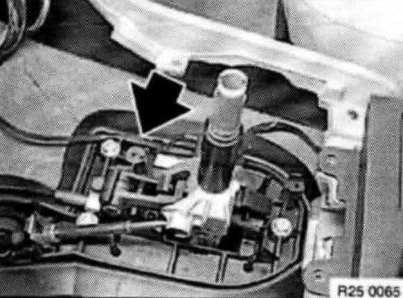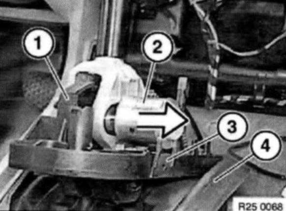 Lever out locking clip (3). Withdraw shift lock solenoid (2) from shift tower (1).