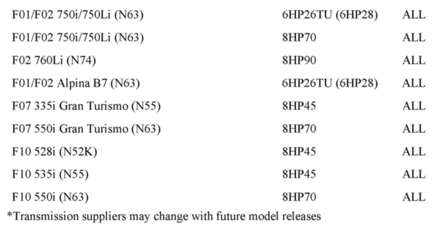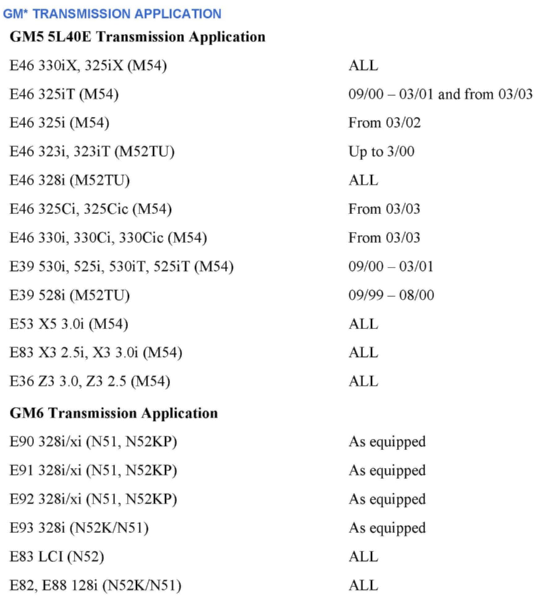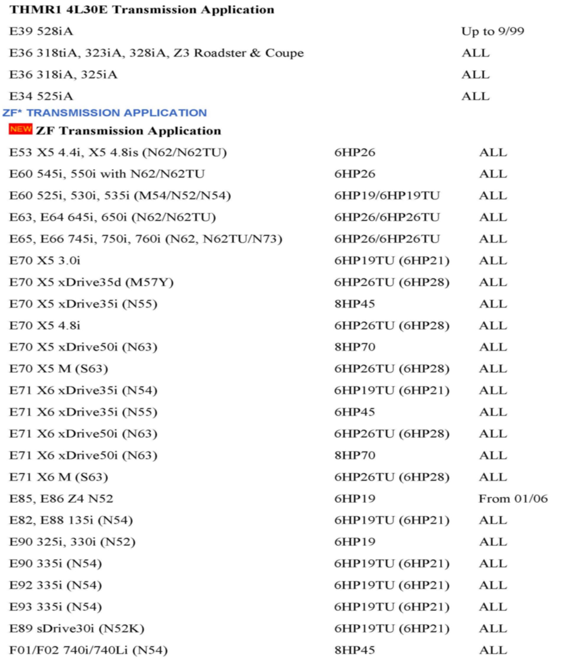 GM* TRANSMISSION APPLICATION/ZF TRANSMISSION APPLICATION