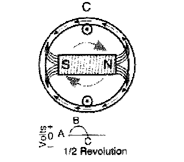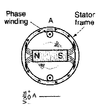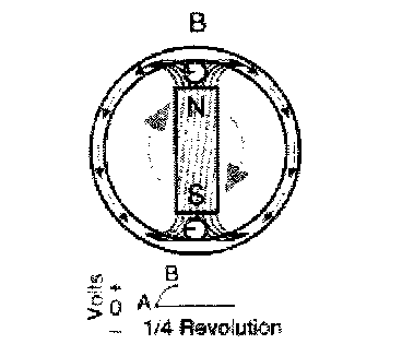 As the North pole of the rotor pole piece approaches the winding of the stator, induced voltage level in the stator begins to rise. The closer the North pole gets to the stator winding the higher the induced voltage. As the North pole reaches 90° to the stator winding the maximum amount of flux lines are acting on the winding, induced voltage is at its highest positive value (1/4 turn).