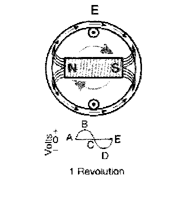 Single Phase AC Voltage Generation requires one stator frame with windings and one magnetic field (North and South pole pieces).