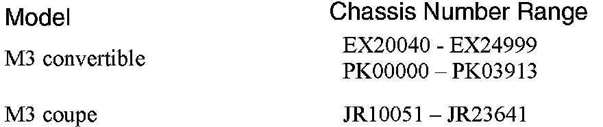 All M3 coupe/convertible vehicles equipped with SMG transmission affected by this Service Action Campaign are also in the range of the soon to be released Service Action # 423: Reprogramming of the SMG Control Module with DIS CD 39 (SI B23 05 04 will be published shortly). Make sure that both Service Actions are performed during the same service visit (as soon, as CD39 becomes available - introduction planned at beginning of September '04).