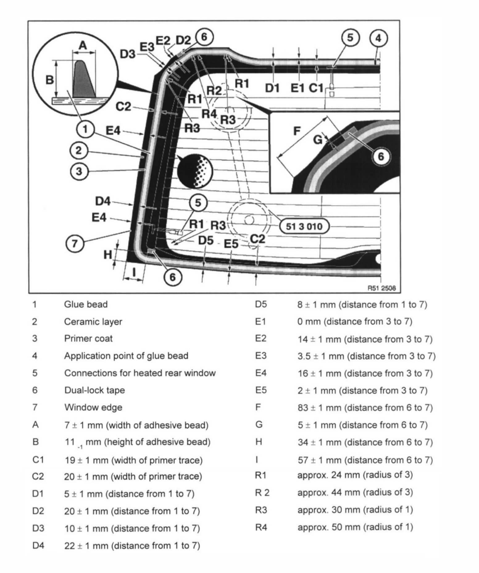 Overview of rear window bonding (E53):