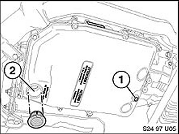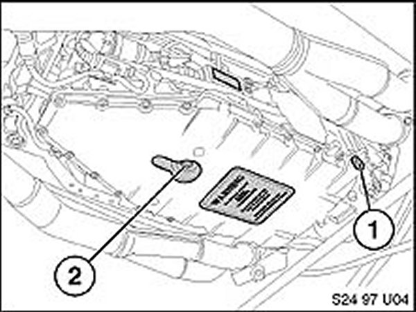 4. With the engine running and the selector lever in Park position, remove the filler plug located on the transmission (see picture for location). If a small stream of oil runs out, the fluid level is correct.