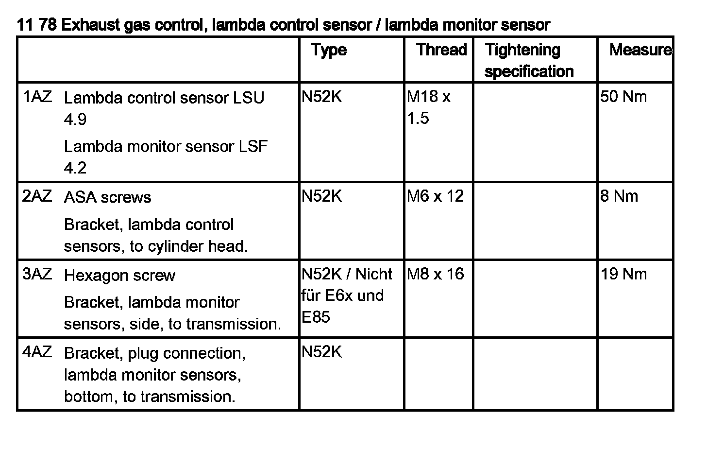 11 78 Exhaust Gas Control, Lambda Control Sensor / Lambda Monitor Sensor