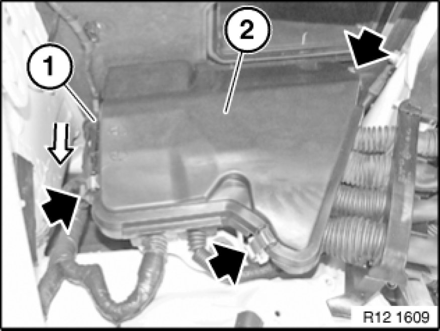 - Remove microfilter housing 64 31 081 Removing and Installing/Replacing Microfilter Housing
