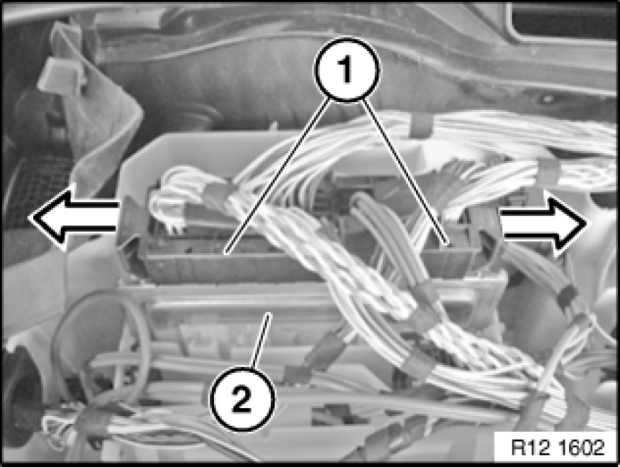 Unlock plugs (1) using slide in direction of arrow and remove.