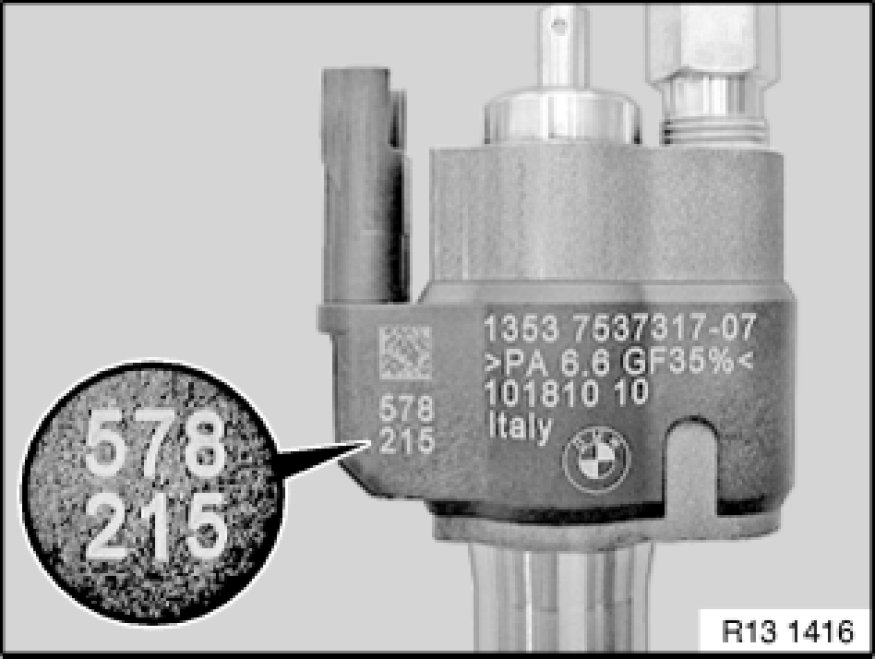 Read off the adjustment values and enter according to the installation location (cylinder) of the injectors:
