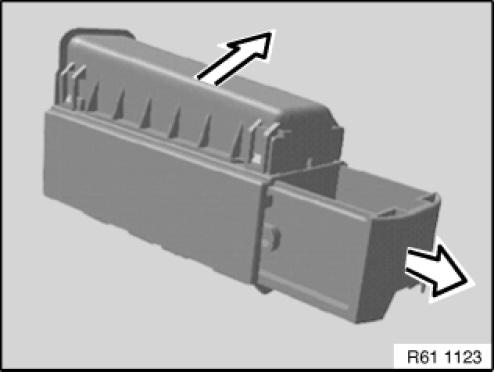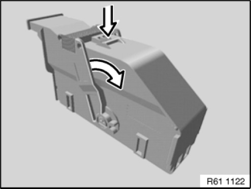 Open clip in direction of arrow and disconnect plug connection in direction of arrow.