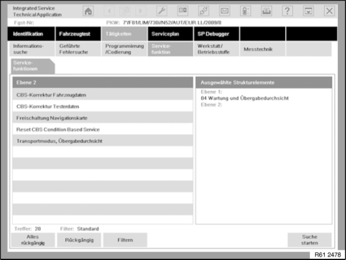 The service function "CBS vehicle data correction" is available if resetting has been carried out unintentionally. Thus the availability of a maintenance operation can be corrected to a value which corresponds more closely to the actual situation.