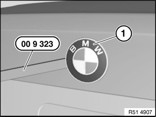 Heat BMW badge (1) with hot air blower and carefully lever out with special tool 00 9 323.